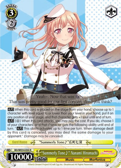 "Summerly Tone" Nanami Hiromachi (BD/WE34-E04 R) [Morfonica x RAISE A SUILEN]$0.40Release Date: 2022-01-21 Set Name: Morfonica x RAISE A SUILEN Card Number: BD/WE34-E04 R ...