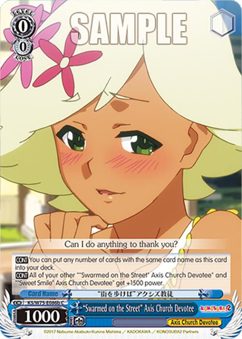 "Swarmed on the Street" Axis Church Devotee (KS/W55-E089a C) [KonoSuba 2]$3.30Release Date: 2018-11-30 Set Name: KonoSuba 2 Card Number: KS/W55-E089a C Ra...