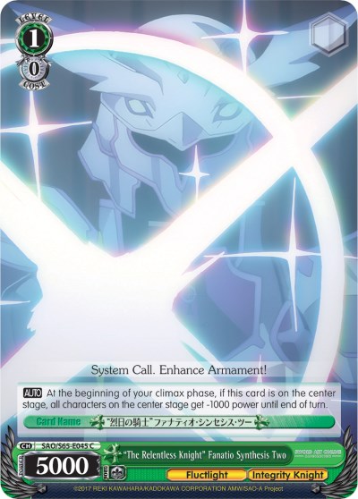 "The Relentless Knight" Fanatio Synthesis Two (SAO/S65-E045 C) [Sword Art Online -Alicization-]$0.30Release Date: 2020-02-28 Set Name: Sword Art Online -Alicization- Card Number: SAO/S65-E045 C ...