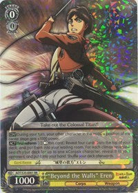 "Beyond the Walls" Eren (AOT/S35-E001 RR) [Attack on Titan]$0.50Release Date: 2015-07-31 Set Name: Attack on Titan Card Number: AOT/S35-E001 RR ...