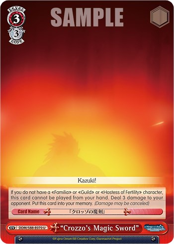 "Crozzo's Magic Sword" (DDM/S88-E070 U) [Is it Wrong to Try to Pick Up Girls in a Dungeon?]$0.30Release Date: 2022-07-15 Set Name: Is it Wrong to Try to Pick Up Girls in a Dungeon? Card Number: DD...