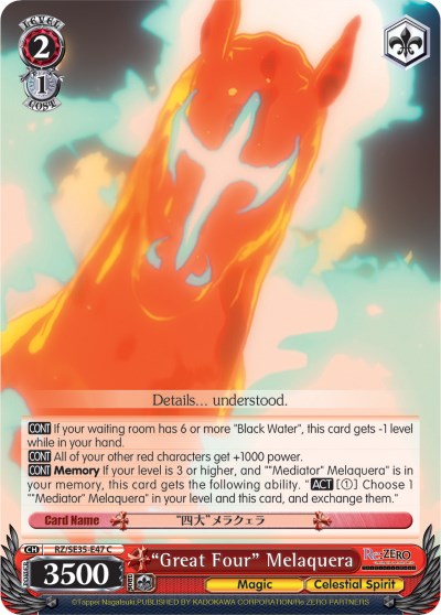 "Great Four" Melaquera (RZ/SE35-E47 C) [Re:ZERO: The Frozen Bond]$0.20Release Date: 2021-02-26 Set Name: Re:ZERO: The Frozen Bond Card Number: RZ/SE35-E47 C ...