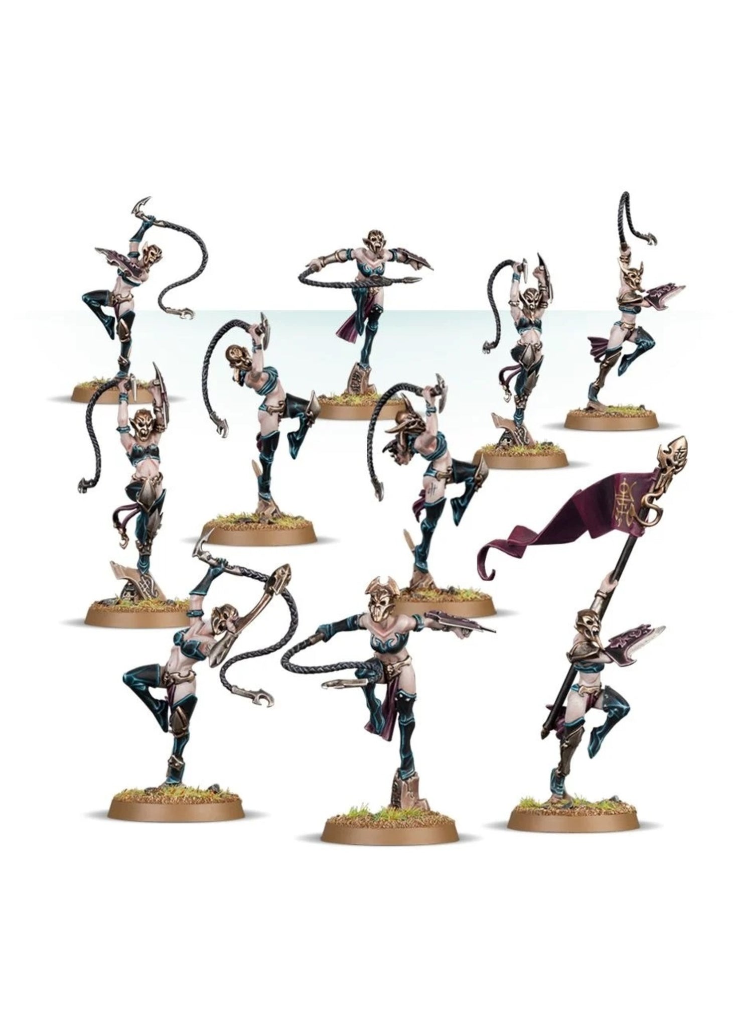 Regular Price $70.00Hurry! Only0units left in stock!Free Deliveryon orders over $100Save 15% on Pre-orders!Devoted followers of Khaine, Witch Aelves spend their entire lives dedicated to serving their bloodthirsty deity. Weapons practice and mock duels take up the majority of their daily lives, yet these are not mere military drills, but religious services with all the gravitas other cults might use when offering prayers to their god. For Witch Aelves, ritual combat hones martial prowess and sates a craving for violence. On the battlefield, dancing like pale shadows, they weave a scarlet path through the orgy of destruction, revelling in the spray of jetting arteries.